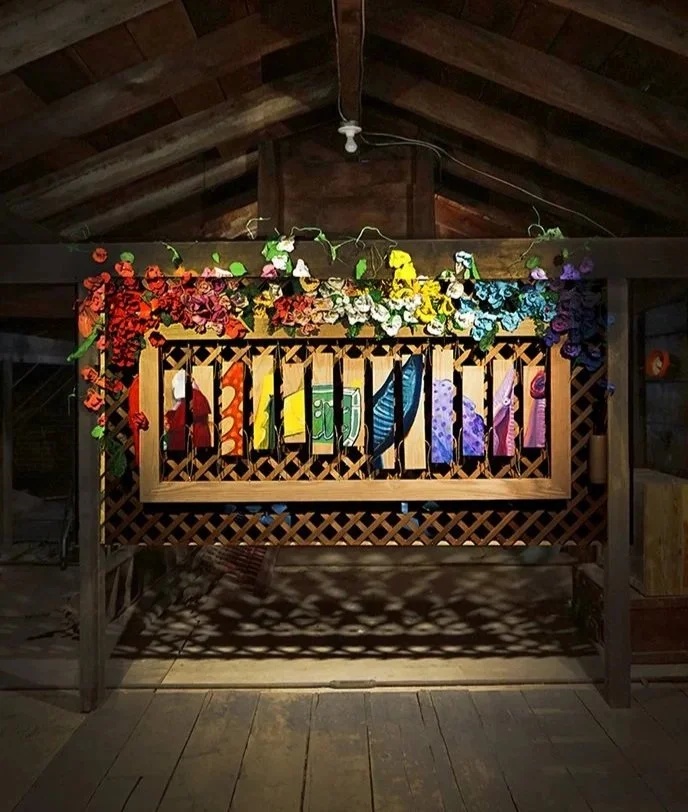 Suspended acrylic slats function as both sculptural elements and playable instruments. When struck sequentially from left to right, they produce the melody of “The Locket Song” from Fullerton Jr.’s opera Lady of the Locket, allowing visitors—regardless of musical training—to activate the composition through touch.
